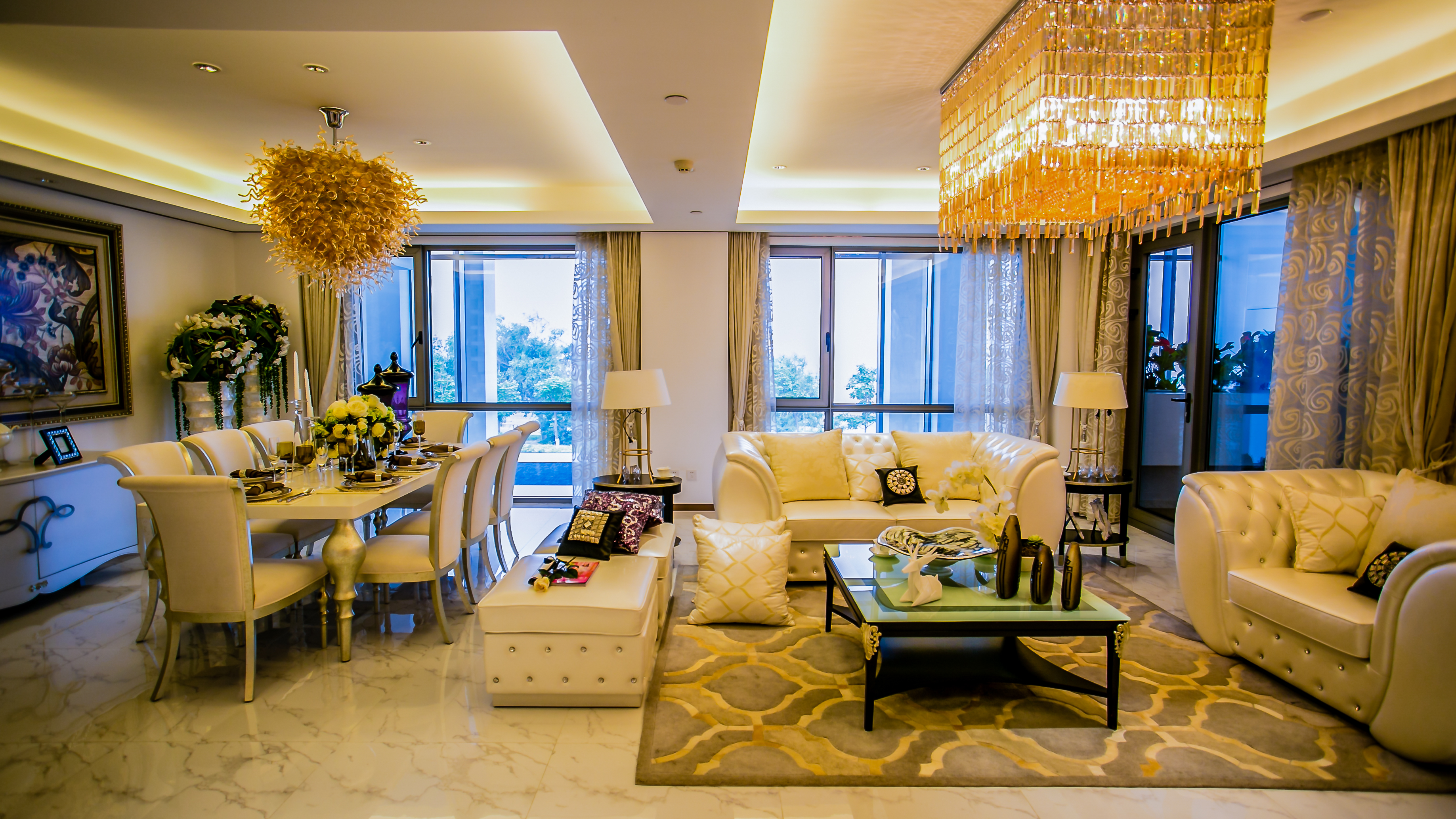 沒有過多的裝飾,圓桌圓椅和多層圓形水晶吊燈相互輝映,呼應(yīng)“天圓地方”的說法,體現(xiàn)業(yè)主天人合一的態(tài)思想度。落地百葉窗使整個(gè)環(huán)境更加寬敞明亮。餐桌與餐廳吊燈及墻上的裝飾畫相呼應(yīng),干枝花瓶的擺放充分體現(xiàn)中國(guó)傳統(tǒng)美學(xué)精神,注重細(xì)節(jié)的設(shè)計(jì)往往更能體現(xiàn)空間的品質(zhì),在住宅空間中同樣能達(dá)到“移步換景”的裝飾效果。