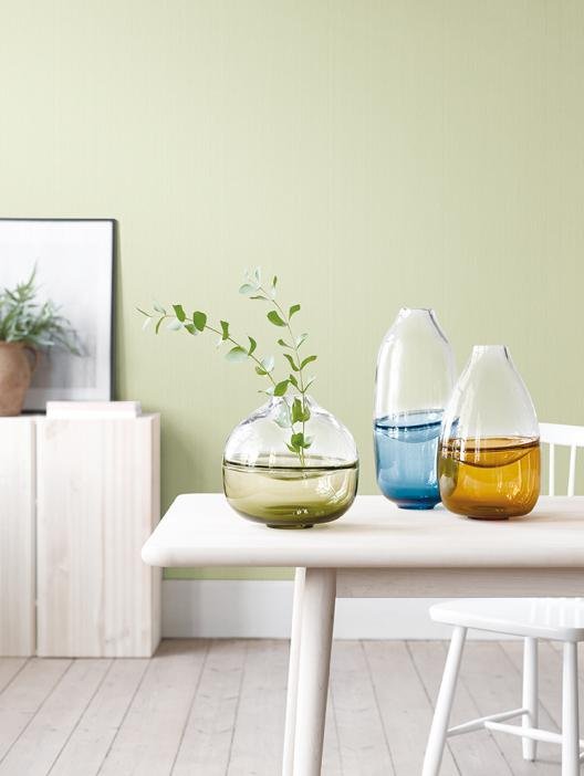 譬如,鋪貼牛油果綠色墻布,大面積使用從而打造出平和自然,舒緩雅致的家居氛圍。搭配幽深的墨爾本綠餐布,由深到淺的漸變色階,清新治愈有極具質(zhì)感。放置純白裝飾品或原木家具,通暢明亮,瞬間提亮空間。
