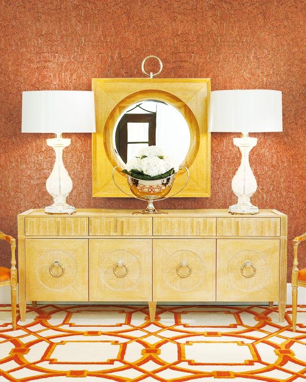 再者,在客廳挑選的愛馬仕橙系墻布,輕奢愛馬仕橙結(jié)合高定時裝中的華麗蕾絲刺繡,展現(xiàn)出精巧迷人的氣質(zhì),非常適合現(xiàn)代風(fēng)家居的選擇。除了選用白色或原木色、黃色等裝飾降低愛馬仕橙的鮮艷明度,而選擇大塊淡橙與白色混合的幾何地毯,時尚溢于言表,效果更佳。