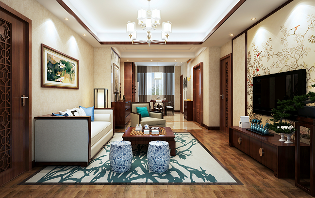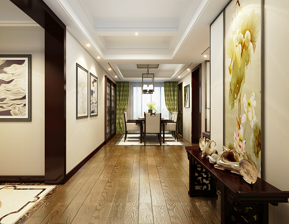門廳的頂棚一般要考慮與地面的呼應(yīng)關(guān)系,從二者之間的形狀、位置方面、作一呼應(yīng),從而進一步強化空間特征。因門廳一般屬于非絕隔斷空間,那么在頂棚造型設(shè)計上,一般要考慮作成完整交圈的設(shè)計,目的是在開敞中求獨立。