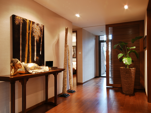 玄關(guān)的地面是使用率最高的地方,所以玄關(guān)地面的材料很重要,要具備耐磨的特點,地面的裝修通常依整體裝飾風(fēng)格的具體情況而定,一般用于地面的鋪設(shè)材料有玻璃、木地板、石材或地磚等。如果您想讓玄關(guān)的區(qū)域與客廳有所分別的話,可以選擇鋪設(shè)與客廳顏色不一樣的地磚。還可以把玄關(guān)的地面升高,在與客廳的連接處做成一個小斜面,以突出玄關(guān)的特殊地位。