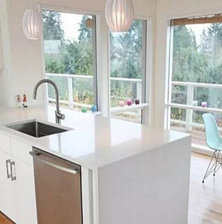 整個廚房以白色為主要色調(diào),整體顯得簡約時尚。通明的大扇玻璃窗讓空間光線充足,顯得通透感十足。玻璃窗外美麗的風(fēng)景,成為了廚房天然的裝飾,在這樣的廚房做飯既休閑又享受。
